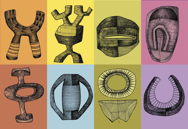 As a very light-skinned African American woman (often perceived as white), I've known intimately both the urgent human need for group belonging and the permeability of 'identity.' As a result, I both treasure the intricacies and specific beauty of one's own culture and value efforts to unite human life beyond those boundaries. I wanted to articulate my hopes for a world that celebrates difference while honoring, above all else, our shared experience as human spirits. I draw these images all the time but suddenly saw them anew in light of your theme. They immediately became characters, each with its own idiosyncratic integrity.