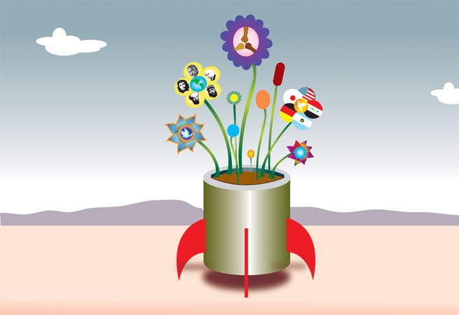 This artwork speaks to non-violence. Symbols of war were juxtaposed next to symbols of peace, figuratively and culturally, to emphasize the point. Color was minimized in the background to focus upon the beauty of peace and tolerance.