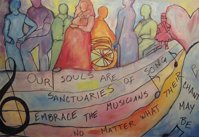My artwork was inspired by a friend's poem, "Sanctuary" and reaffirms my commitment to rid the world of prejudice and hatred.