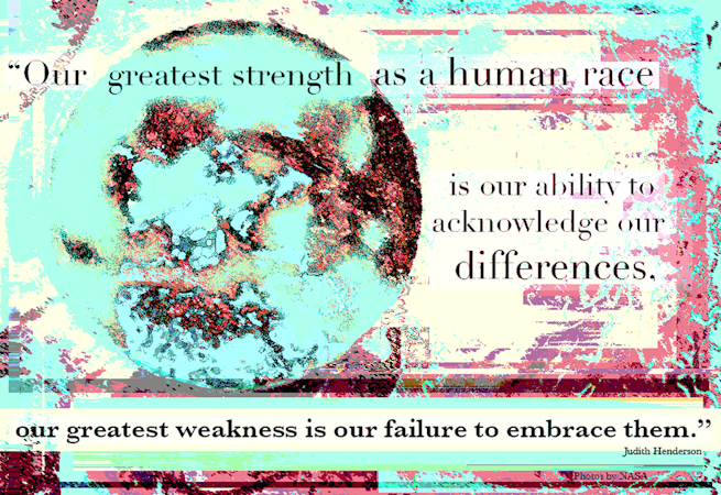 Looking at ourselves from a different perspective, or from a larger scale, the viewers may think about humanity and their role within it. I used the earth as a symbol to represent one common trait. The text is used throughout the piece to create rhythm as well as to express the message.
