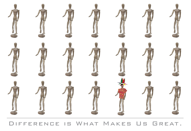 Self-expression is very important, even among mannequins. Although they are typically void of character, some fashionconscious figure mannequins have recently begun wearing garish outfits, a bold statement of their individualism. Rather than falling in line with the rest of the wooden army, this particular mannequin proudly sports a pair of heart-shaped sunglasses, a jester’s hat and a dashing Hawaiian shirt. The lone rebel, though blissfully unaware of how tacky his outfit looks, has decided he will no longer be happy blending in with the crowd. Surely he realizes the importance of self-expression, and wholeheartedly believes that our differences make each of us great. While it must have taken courage to break free from the crowd, this mannequin is proud of his uniqueness. And take it from me, the other mannequins are quite impressed.