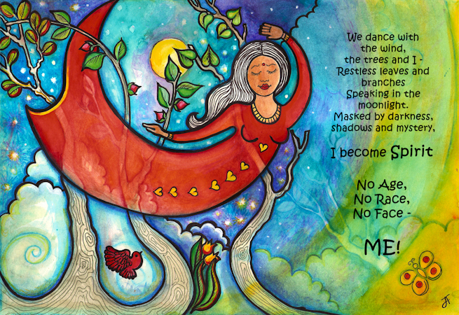As a female I’ve been judged on how I look, my shape, my race, my age, and on what a female should or shouldn’t do. Wouldn’t it be nice if we could be loved just as we are – and for who we are – seen beyond age, race, gender and shape? My artwork and poem are pleas to the world to look beyond and into the soul.