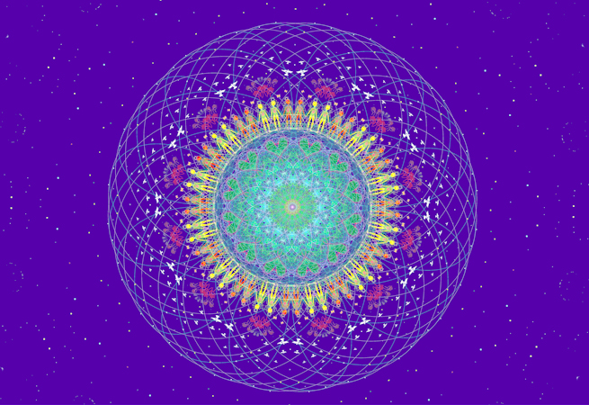 I used a mandala rosette because it starts with a seed that is then reflected and multiplied to become whole. By softly focusing on the center, our field of vision expands to include the complete image – a paradoxical feeling of moving inward and outward simultaneously. And so it is with us. We become whatever thoughts (seeds) we decide to reflect and multiply. Only when we are still and present in the moment can we express our highest truth. My piece represents a living jewel, our Mother Earth, floating in our Father Sky’s embrace. This is our home.