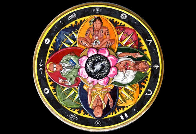 As an artist I have been working with different religious and scientific traditions for years. I use the Mandala, a Buddhist teaching tool, to embrace each of these traditions as culturally specific flowerings of insight. I hope viewers can recognize a familiar tradition and then contemplate the real and relevant commonalities threading all traditions of insight together