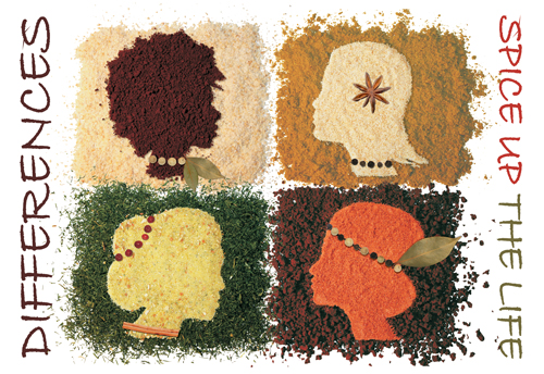 In my artwork spice silhouettes have been used to represent different races. The spices originate from different cultures, yet they have been widely accepted in cuisines around the world. The goal is to clearly imply how many differences have been accepted and that by embracing them; we have improved our lives and made them more interesting. I see these differences not as dissimilarities, but as novelties which bring progress to our society.