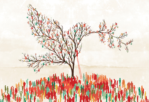My piece represents the idea that we’re all in this together and if our differences are put aside, we can be part of one universal family – with a worldwide family tree of colorful peace and unity.