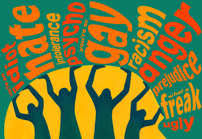 "Although WORDS are merely sound waves, they can hurt more than any solid object."