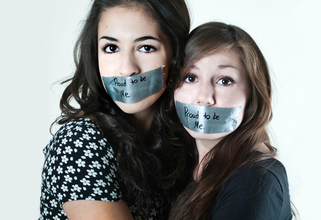 For this competition I chose to do a piece representing racial and sexist issues. It showcases two women in a loving and supportive embrace. This photograph represents how all women should be proud to be themselves no matter what their skin color, size or sexuality. These two women are posed with tape over their mouths to represent that society has silenced their opinion. The words on the outside of the tape show that even if they are told they are not right in anyway, they are still proud to be who they are and support each other. Ultimately these women represent strength.