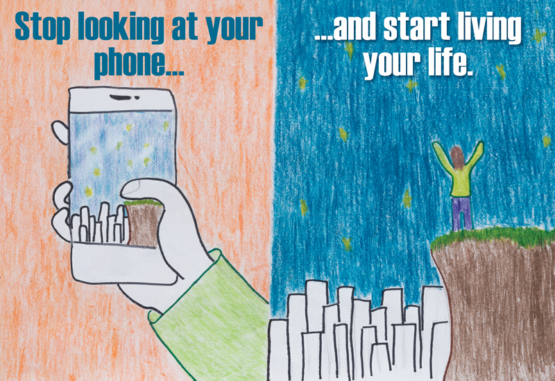 I feel that people are on their phones way too much, to the point that people may think that the images they see are the “real thing”, but they’re not. I hope that this drawing will help people start living their life.
