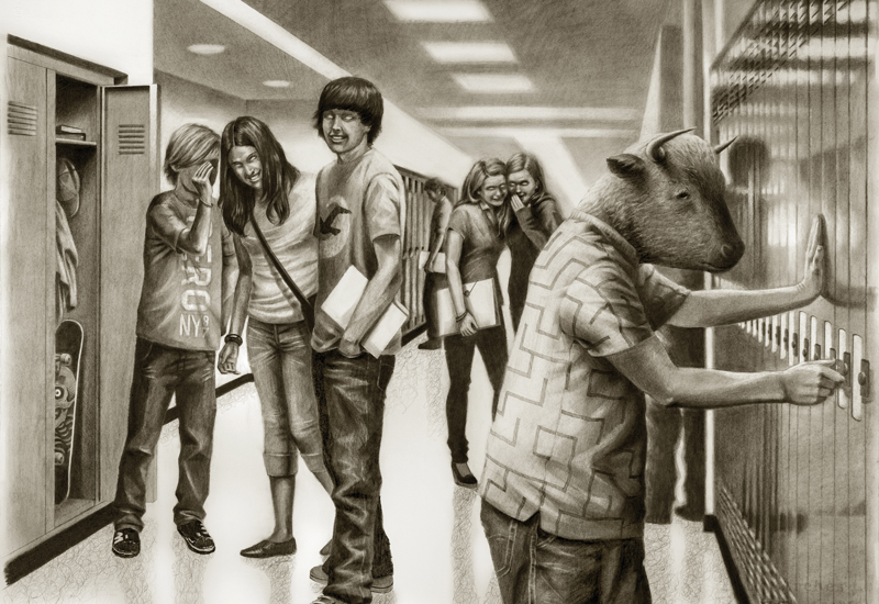 Societies strive for the establishment of stability and order. Those who do not fit in and are deemed as different are consigned and silenced. Myths often portray them as monsters, like the Greek Minotaur. His alienation is rooted in the fact that he is reviled by others. It is not the essence of his being, it is imposed upon him by the mainstream. My drawing juxtaposes the conventional and the grotesque. By featuring the instability and disorder implicit in the monster concept, I introduce an inquiry into societal paradigms. This entails a consideration through contrast of a reality that embraces what is different at cultural, political, racial, economic, and sexual levels.