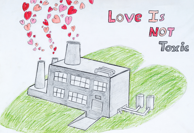 The message of my artwork is that instead of creating toxins, this factory creates love. Instead of harming people, it brings people happiness—a simple dream that I hope will one day become reality.