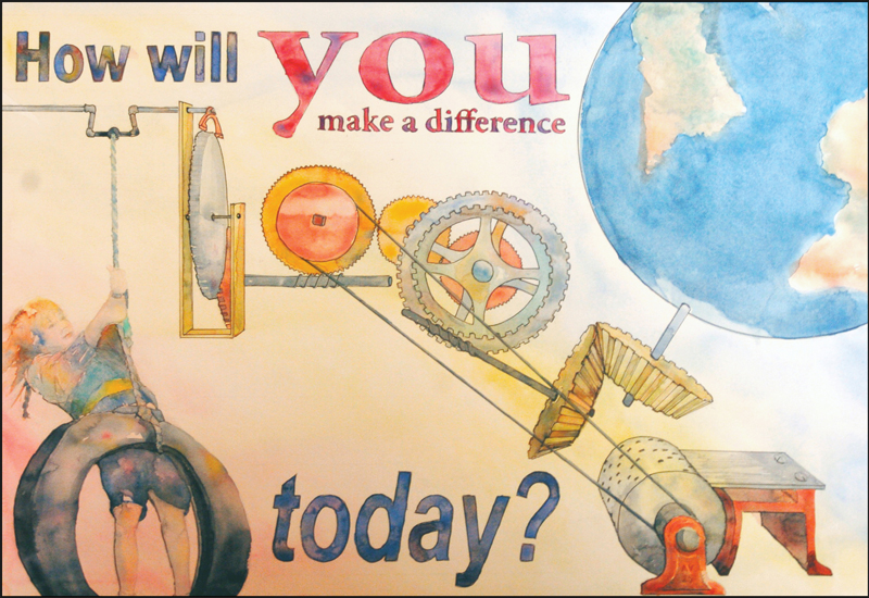 I am fascinated by the way small acts can make a big difference in people’s lives. We’d all like to make grand statements and do big things in life, but along the way there are so many opportunities to effect positive change. Often the results are greater than we’ll ever know. I used watercolor to depict this scene, because it introduces an imprecision and randomness that we see in life.