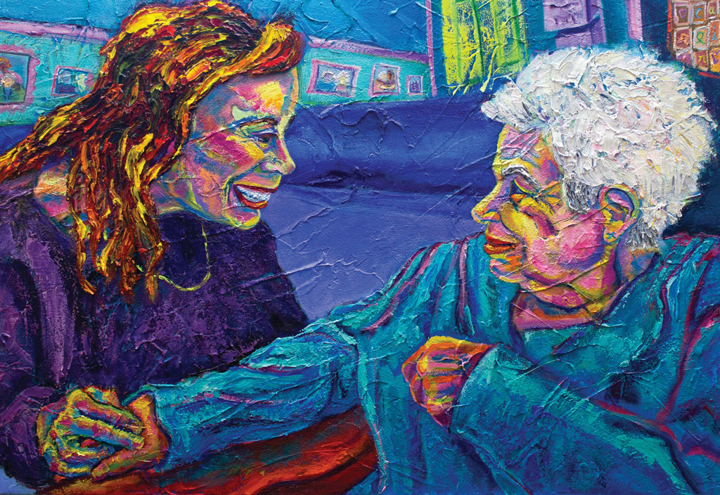 “Kindness Matters” is about how a simple act of kindness can make someone’s day. Kindness is very underrated in our world but it can make all the difference. I hope this work reminds people to perform an act of kindness, either intentional or random everyday. One gets much more pleasure out of being kind than being mean. If we all started being kind to each other, to have empathy for those who are different, it would have a big impact in the world. When I paint, it’s not a physical reality I’m after but an expressive and emotional one.