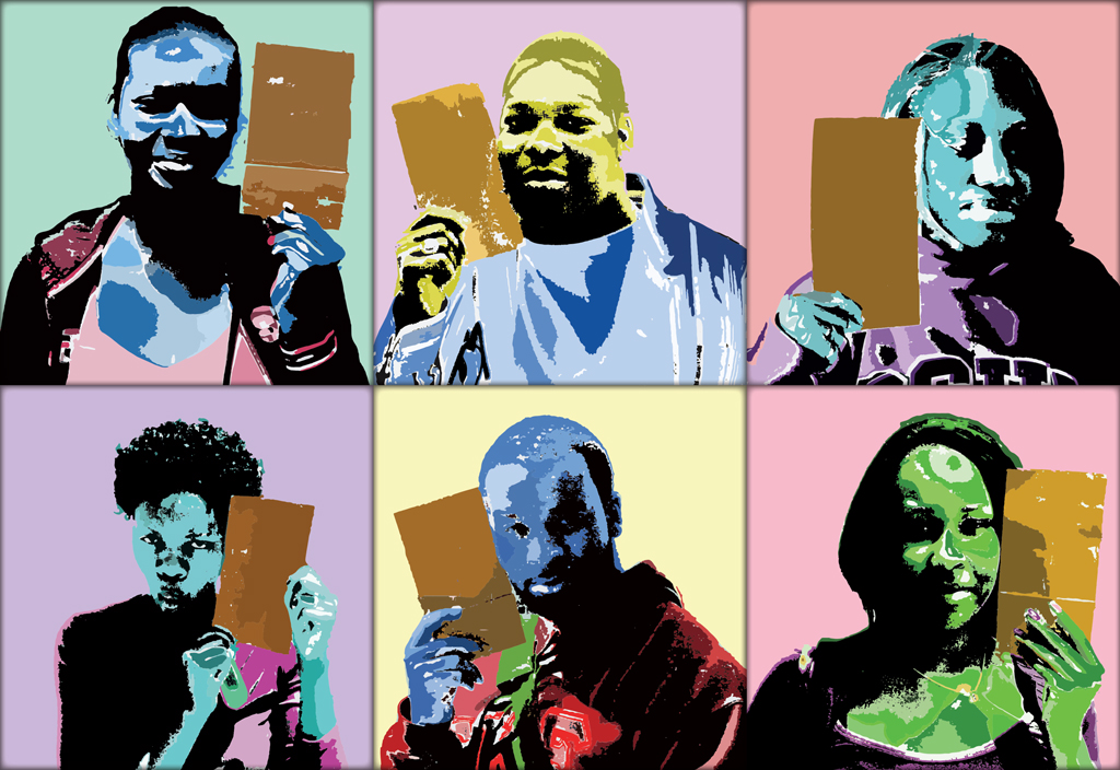 “Lighter Than the Brown Paper Bag” is the piece that propelled my painting style into what is is today. It is created on the hopefully outmoded theory that African-Americans who were lighter or no darker than the brown paper bag were considered “better” than those who were not. All of my subjects are of AfricanAmerican descent. I have painted all of my figures in bold beautiful colors to state that every shade of every color should be the standard of privilege, equality and beauty in this and all countries.