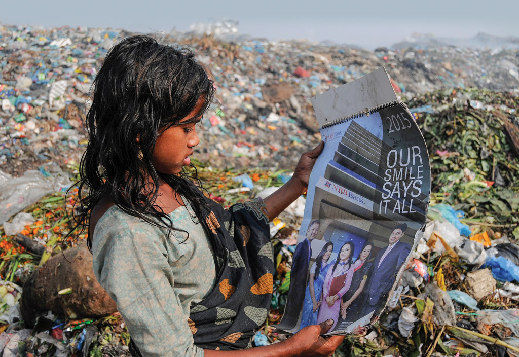 A garbage girl is deprived of all kinds of human facilities.