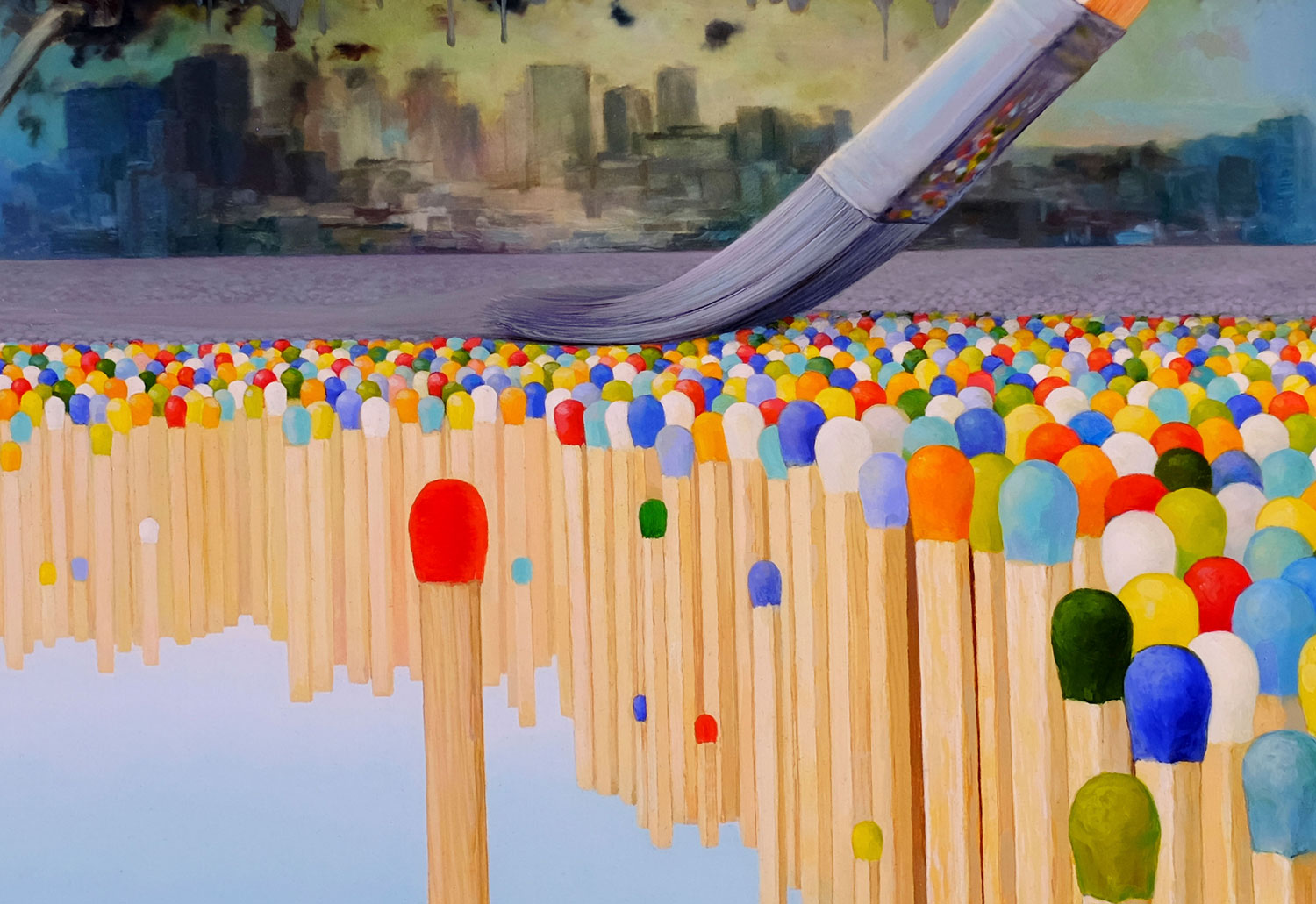 In childhood, we are diverse and unique, and the world seems bright, colorful and radiant. But then we grow up and get embedded in adult life with its endless obligations and demands. In the end, we lose that sparkle—that uniqueness—no longer able to resist the gray wave of the metropolis. But if we try, we can enrich our lives with diversity and inclusion and show the world the beauty and vibrancy of our uniqueness. We should fight to not let the gray brush hurt or disguise our true selves. If we don’t lose that rainbow within, everything around us will be painted in vivid colors and true emotion.