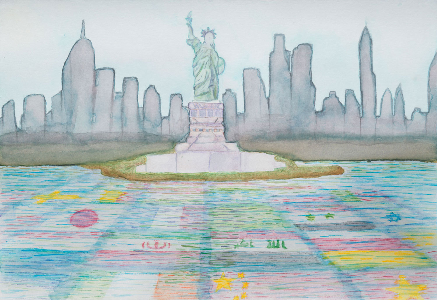 The definition of liberty is “the state of being free within society from oppressive restrictions imposed by authority on one’s way of life, behavior, or political views.” Lady Liberty stands exactly for this and as a symbol for the many immigrants in this country. “Reflections of Liberty,” depicts the Statue of Liberty overlooking multiple flags in the water. I was inspired to create this piece after a travel ban took effect, which had a profound influence over which refugees were welcomed into the US. I grew up with the concept that the US is a melting pot of ideas and cultures from all around the world. The country was founded by immigrants and today immigrant families make up over a fifth of the population. I want to send the message that countries, cultures, and ethnicities are united and equal under liberty’s view.