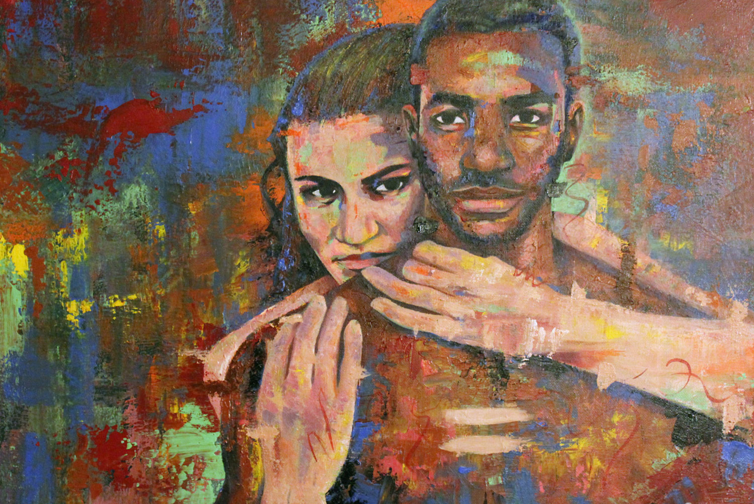 I’m extremely grateful for the gift of art. It’s a blessing to be able to create, inspire and bring joy to others. I don’t focus on one particular subject, but I believe I’m at my best when I produce work that takes a critical view on social/cultural issues. This piece, entitled “What Color?” addresses interracial relationships. Although it’s accepted, some people still frown upon individuals dating outside their own race. I created this piece to speak to those people, as well as anyone in an interracial relationship. We get so caught up on race, gender, orientation, etc. Ultimately, all that matters is love.