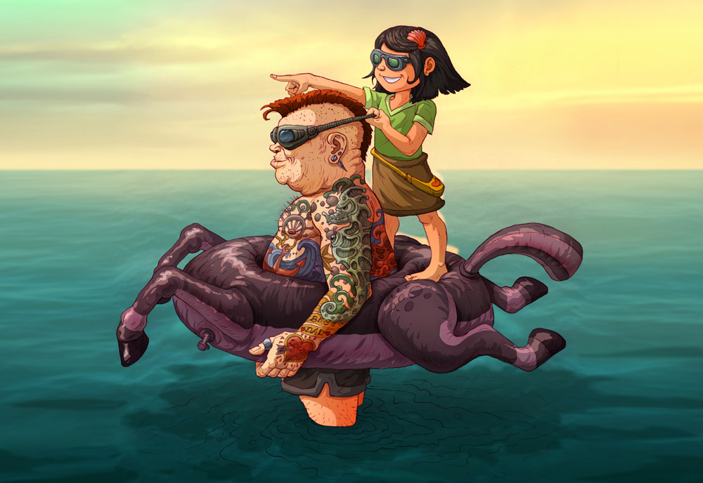 My artwork navigates, through colorful visual storytelling pertaining to the modern American way of life, our relationships with the environment and nature and what it means to live in healthy communities. Often these themes are combined into multi-media endeavors that incorporate mundane domestic objects done with whimsical touch and humor. This piece focuses on the differences between the younger generation, which represents a new world and a new way of thinking, and the older generation which represents an older thinking. The artwork depicts how the two find a common language to communicate with each other and bridge the differences in a positive and constructive manner. I hope it will invoke a conversation which will inspire others to explore how we bridge the gap between our different world views.