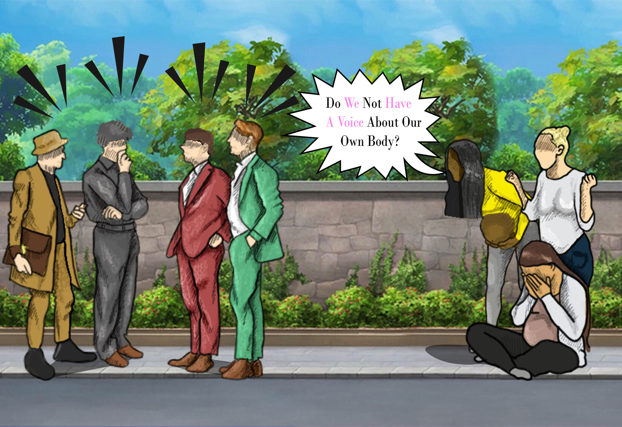 Women have been fighting for rights their whole lives, including voting rights, equal pay, career opportunities, and reproductive rights. I tried to show the frustration that women feel. My artwork is about reproductive rights and showing how their voices aren't being heard. These are all real life problems that women face on a daily basis.