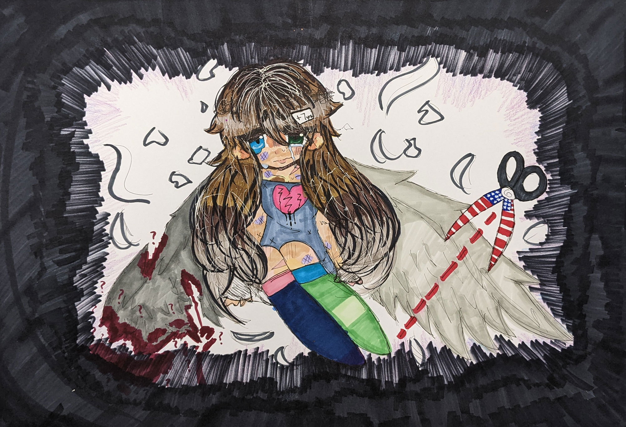Almost all immigrants have their dreams cut short; they can't do what others are able to do, because they are not citizens. Many were brought to America against their will; my mom is an example of that. Her parents brought her here at the age of 10, and she's still in the process of becoming a legal US citizen. She could have been a lawyer, a nurse, a teacher, or have gone to college and been able to get a job, but she couldn't. Coming to America, in a sense, clipped her wings and many others'. It feels like the government often turns a blind eye to those wingless souls, leaving them in the darkness and letting them watch their dreams die. I made this art piece is to show the suffering and cruelty of this process. Isn't America supposed to be the land of freedom? The land where hopes and dreams are accomplished?
