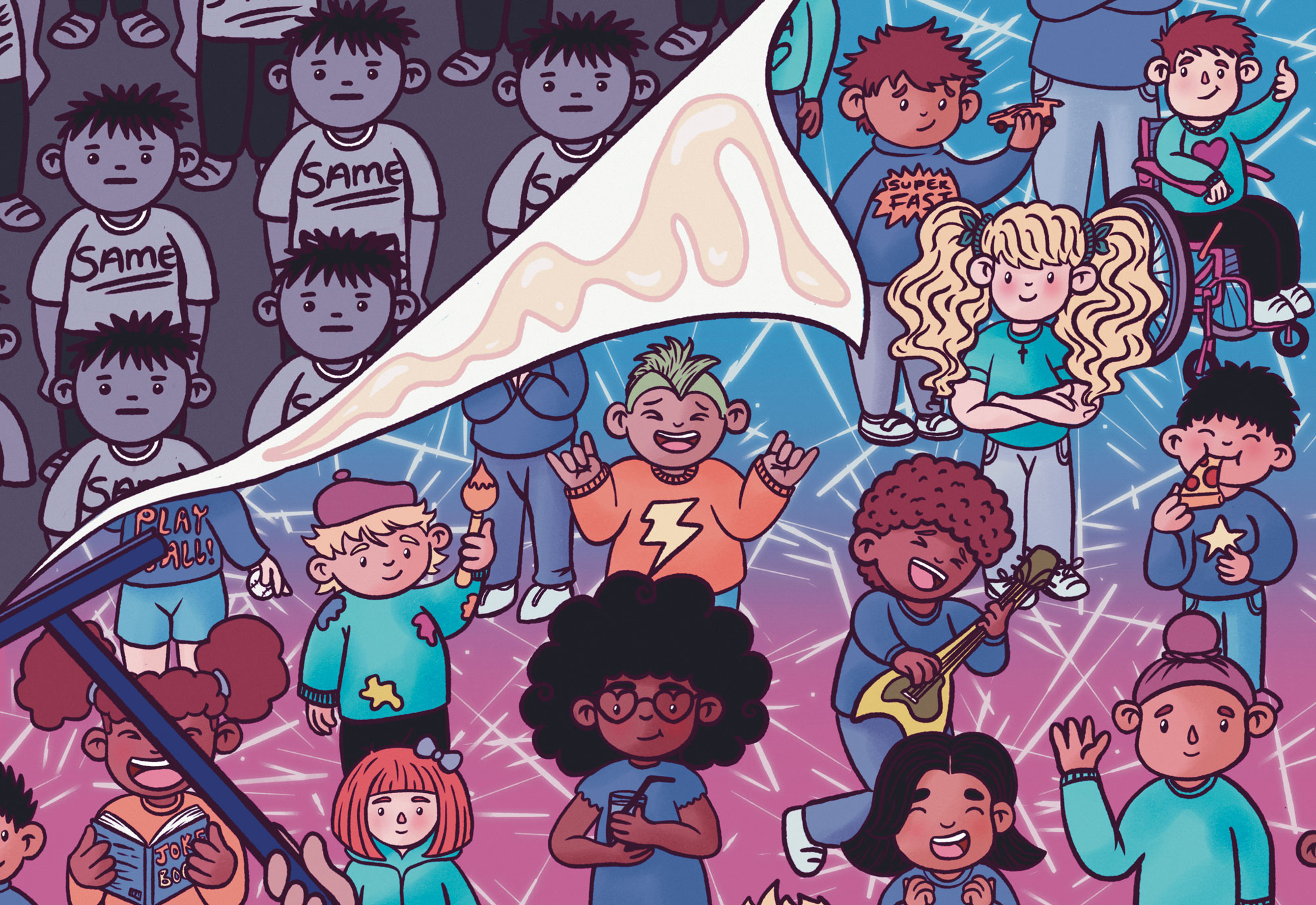 In a world where you are asked to fit in, stand out and do it proudly. Our differences make us unique, they should be celebrated and acknowledged. This artwork depicts a dull, grey billboard being pasted over with a vibrant portrait of a very happy bunch of people.