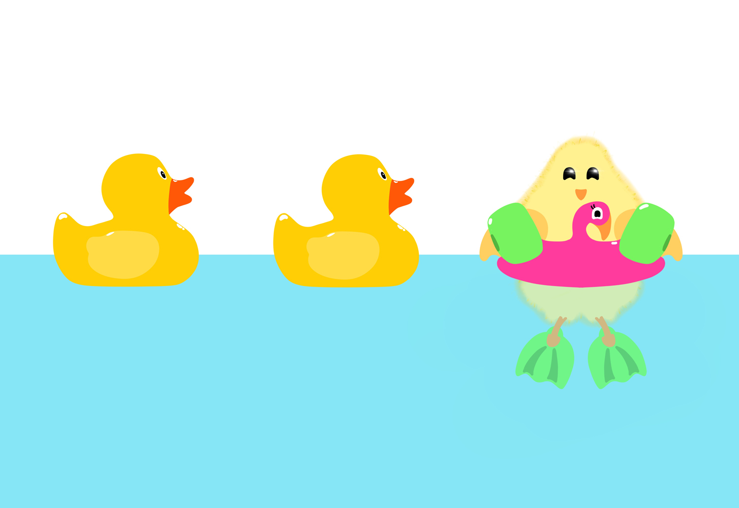 I drew two classic rubber ducks and a baby chicken. This represents being different and still being able to do what others can. I used colors that pop to make the chick stand out from the rubber ducks. I gave it floaties and flippers to show that you can still do what others can even if you are different. In this case, they can all swim. I made this piece in Procreate. Through my illustration, I showed that with our differences we can all get along, come together with a shared interest or hobby, and do things we are not expected to be able to do.
