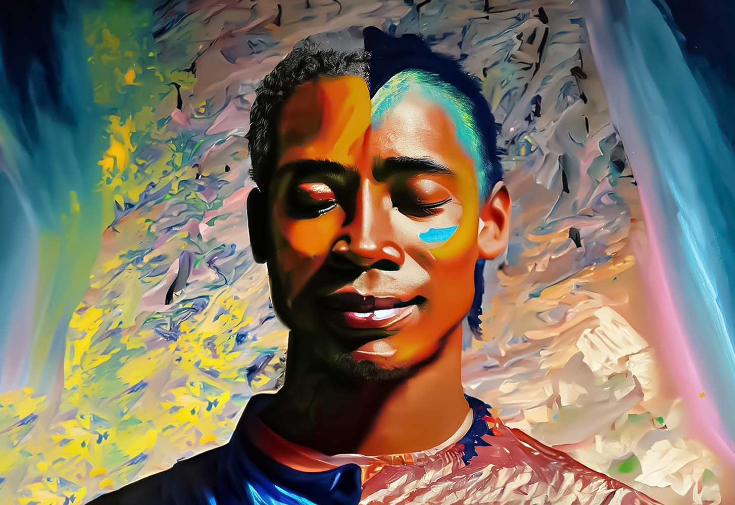 This work is about the influences your culture and environment have on you. As you grow up, you are a product of your past and where you came from. This piece is a huge painting as I am a mural artist, and I love to work with large and expressive lines to create compelling art.