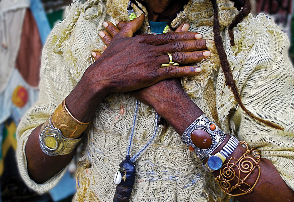 I was at a Maroon celebration in Jamaica. The Maroons are the descendants of a tribe that were able to escape slavery and defeat the British in 1739. The First Maroon War was a conflict between the Jamaican Maroons and the colonial British authorities that started around 1728 and continued until the peace treaties of 1739 and 1740. It was led by self-liberated Africans who set up communities in the mountains. I saw this lady dressed in full regalia, and asked her permission to photograph her. She said yes. I then asked her to show me how proud she was to be a Maroon, and my photograph shows you the answer. I later found out she was the High Priestess of the peoples who carry that heritage that still exists in Jamaica.
